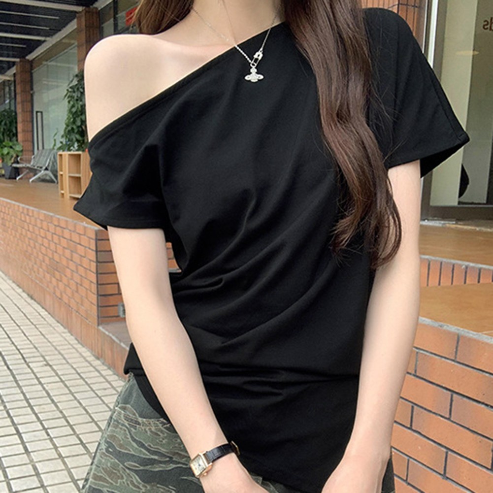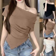 (9) Application: Vacances, Vacances, Daily. 7) Style: Casual. 6) Pattern: Solid Color. 5) Élasticité : Slight Stre t ch. 4) Sleeve Style :Short Sleeve. 3) Neckline : Off Shoulder. 1) Applicable G ender:Female.