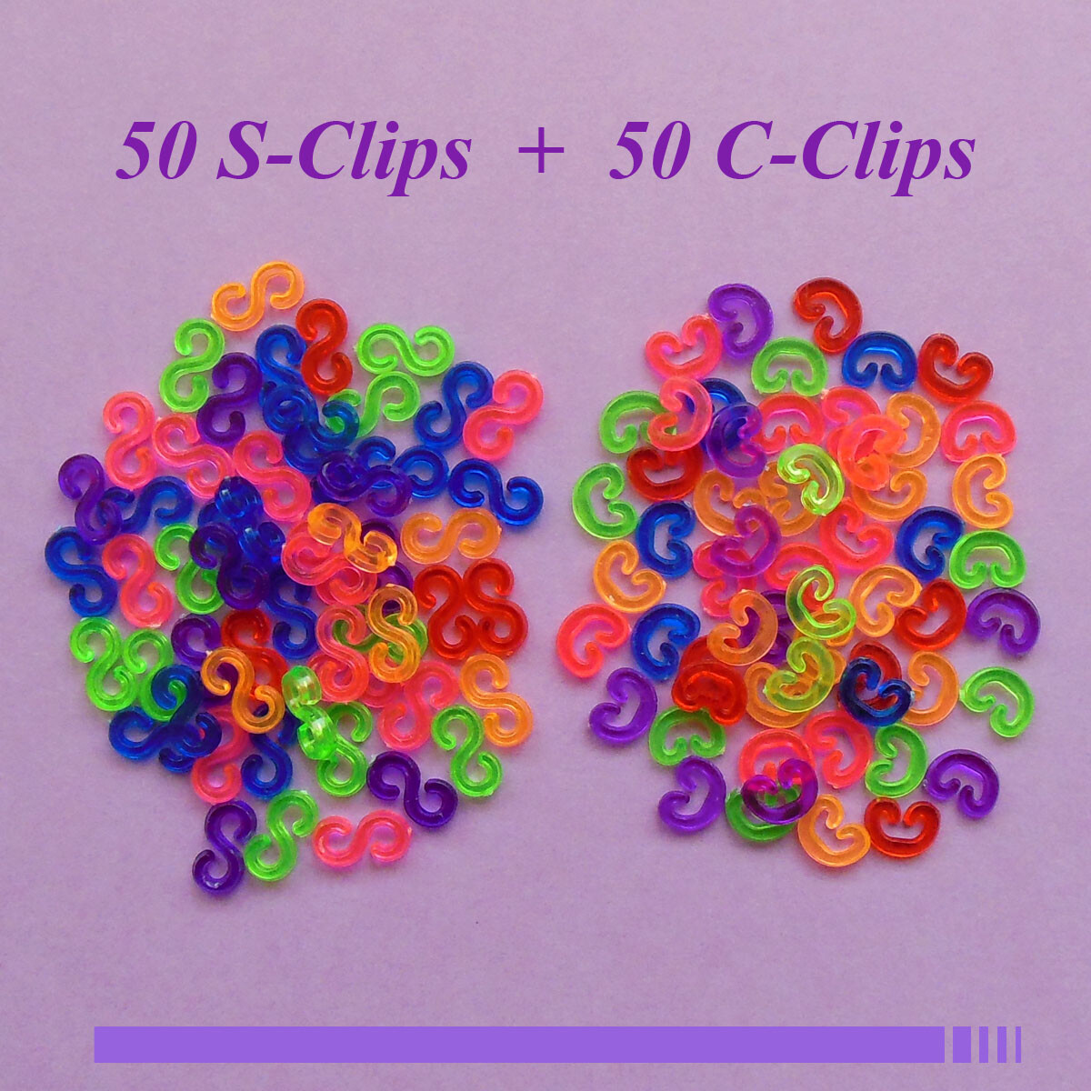 Lot de 100 Clips Couleur (50 S-clips+50 C-clips) bracet elastique