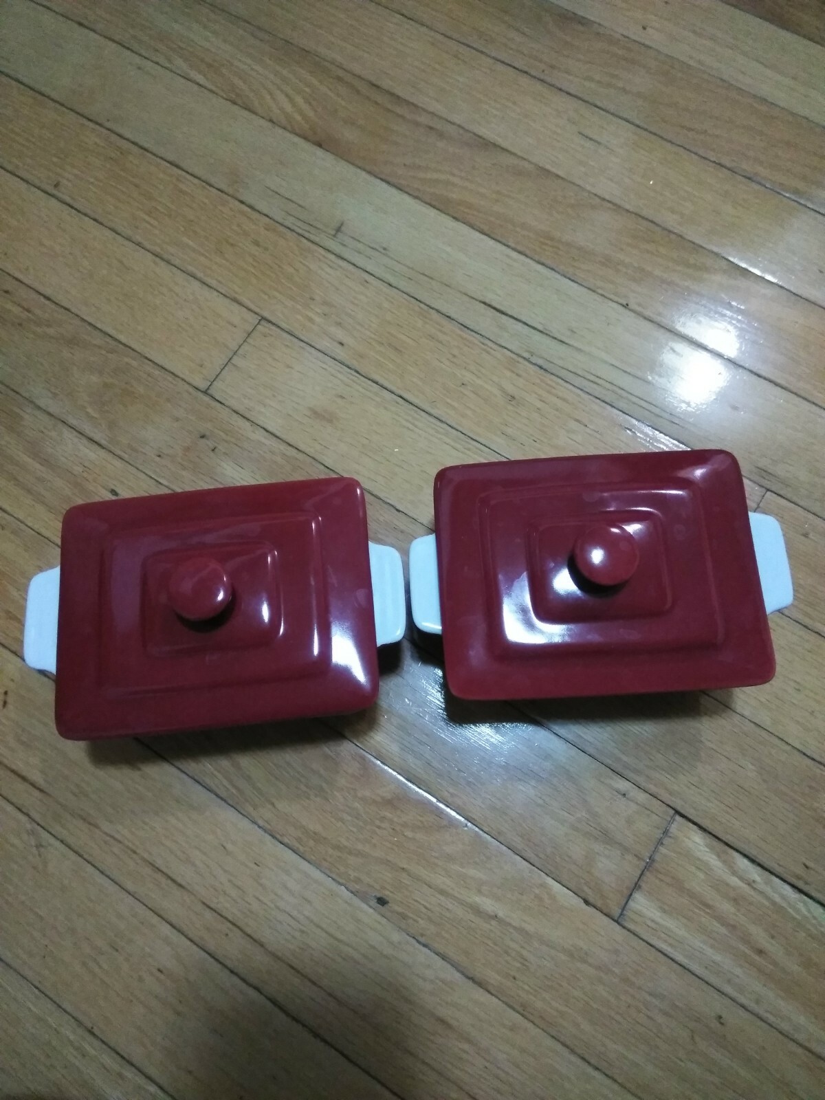 Ancienne mini casserole en céramique avec couvercle - lot de 2 - couleur rouge