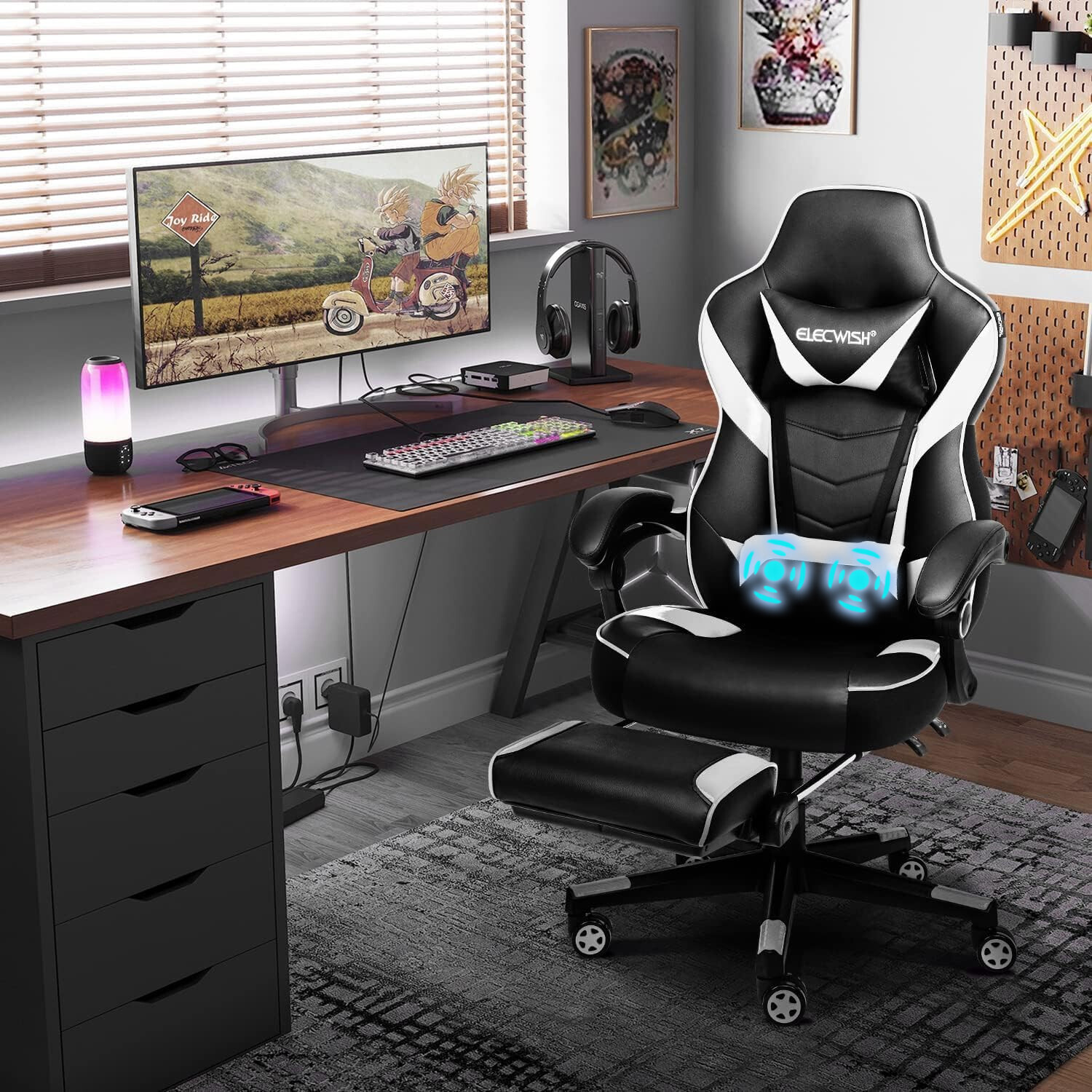 ELECWISH Chaise Gaming Ergonomie Chaises de Gamer avec Massage Soutien Lombaire