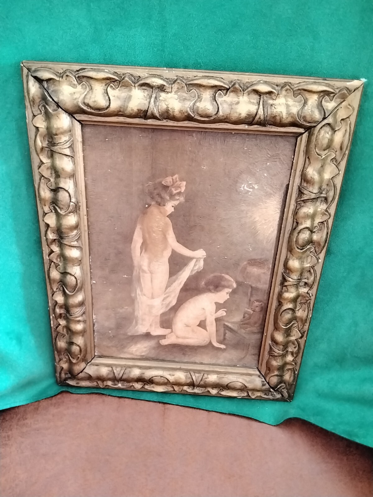 Cadre 1930 En Bois Doré Peinture Non Signée. Hauteur du cadre 31 cms Largeur 25 cms. Espace peinture ou photos Largeur 16.5 Hauteur 23 cms. Années 30.