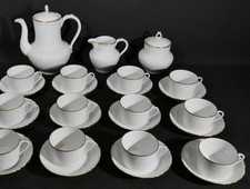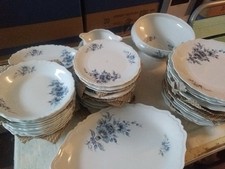 Service en porcelaine de Limoges à décor de panier fleuri frise violette 50 p.