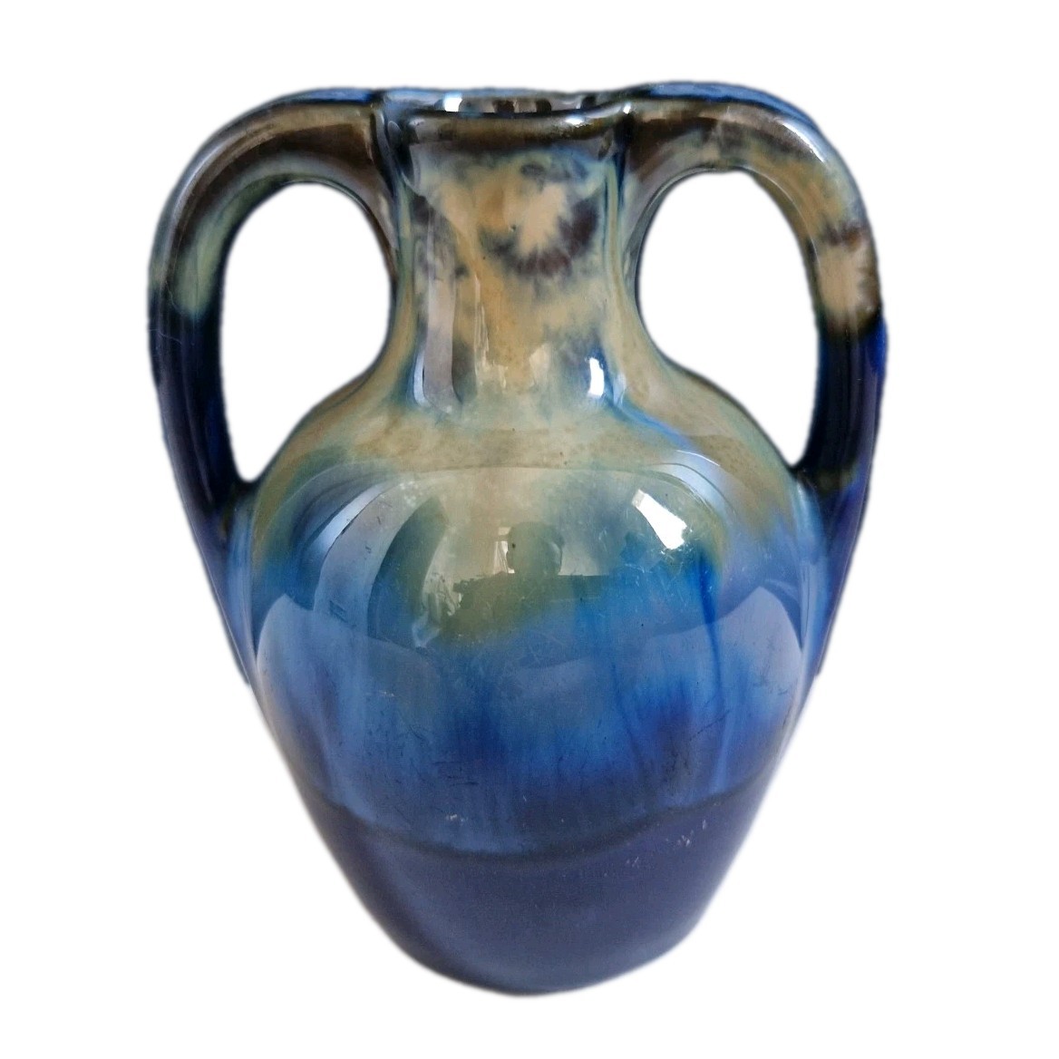Ancien Petit Vase Amphore. Non Signé (ou signature à identifier, on voit des traces de feutre bleu en dessous). En Céramique. En bon état. Ni fêle ni éclat, mais quelques irrégularités, imperfections et rayures d'usage.