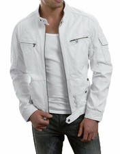 Veste en cuir blanc pour femme avec agneau étoile noire taille M
