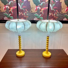 PAIRE DE GRANDES LAMPES DE TABLE EN BOIS ANNÉES 60 H. CM