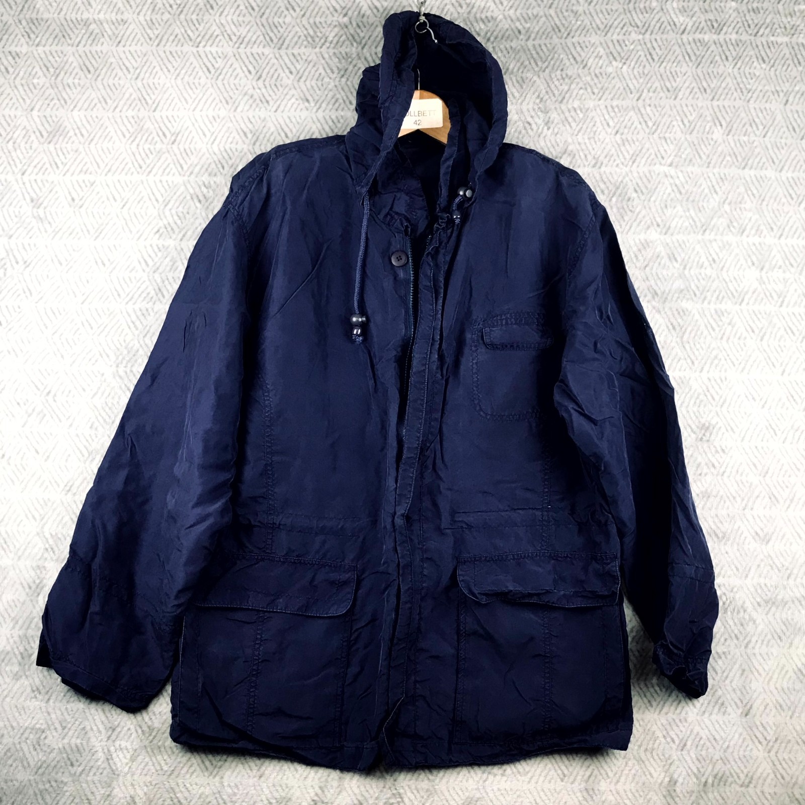 Vintage Coupe-Vent Veste Femme XL Bleu Capuche Multiples Poches Plein Air