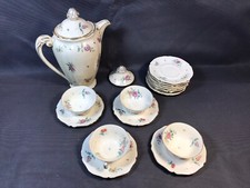 SERVICE À THÉ EN PORCELAINE FINI OR ANTIQUE WINTERLING BAVARIA STYLE EMPIRE Cette liste présente un service à thé de style Empire en porcelaine de couleur ivoire de la plus haute qualité finie avec des profils en or pur. Le service a été créé par le fabricant allemand Bavaria Winterling au milieu des années 1900. La théière mesure 15 cm de diamètre, 22 cm de la poignée au bec et 13 cm de hauteur Le pot à lait mesure 12 cm de la poignée au bec et 8 cm de hauteur Le sucrier mesure 10,5 cm de diamètre, 15,5 cm d'anse à anse et 10,5 cm de hauteur Les 6 tasses mesurent 5cm de haut et 10,5cm de diamètre, les 6 soucoupes mesurent 15cm de diamètre. Pour des demandes spéciales, des doutes ou des informations, contactez-nous sans problème. Nous répondrons à vos questions dès que possible.