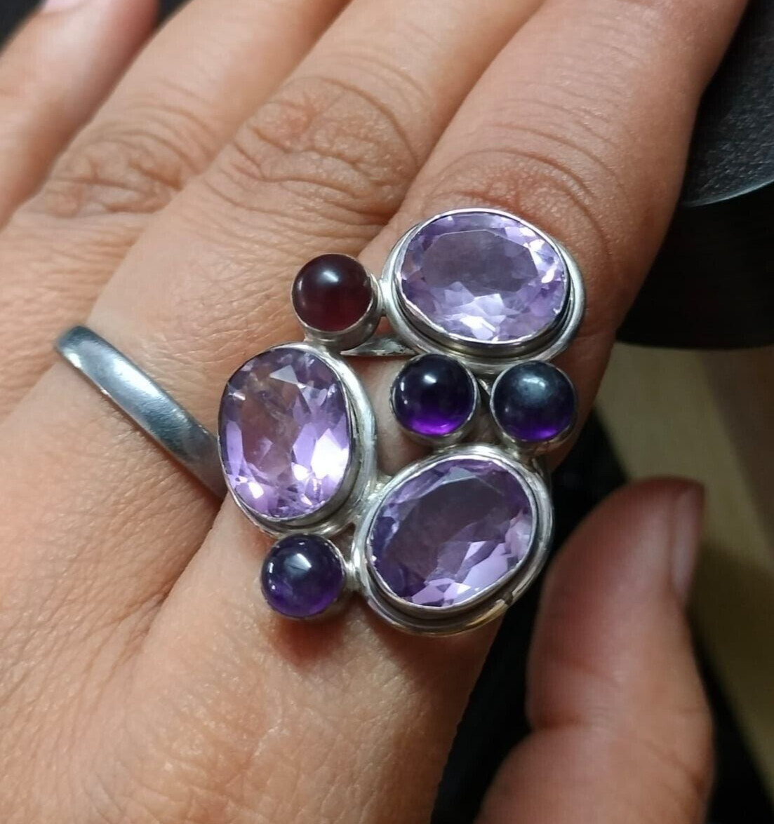 Bague cocktail grenat en argent sterling 925 pierre précieuse améthyste naturelle cadeau de Noël Jewelry. Just write us. Taille de la pierre : 10 x 8 mm, 5 mm.