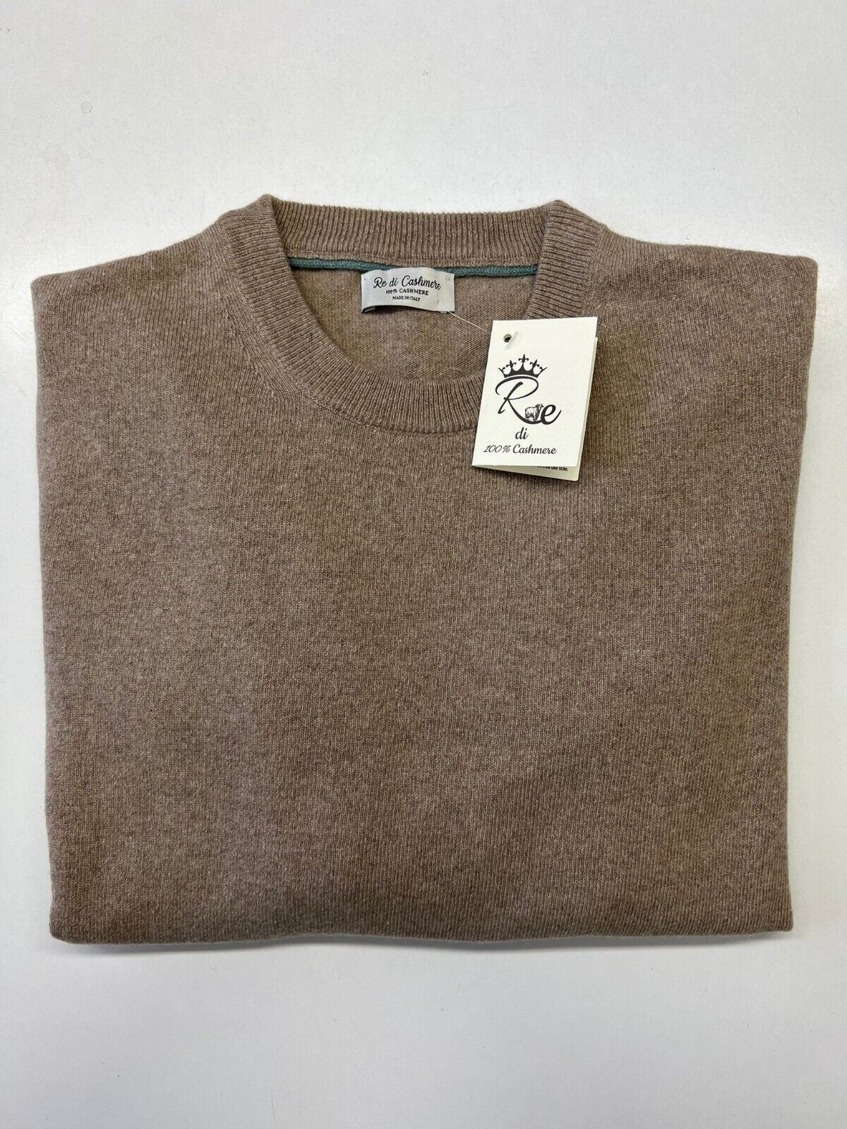Pull 100 % pur cachemire homme roi cachemire TG M beige fabriqué en Italie