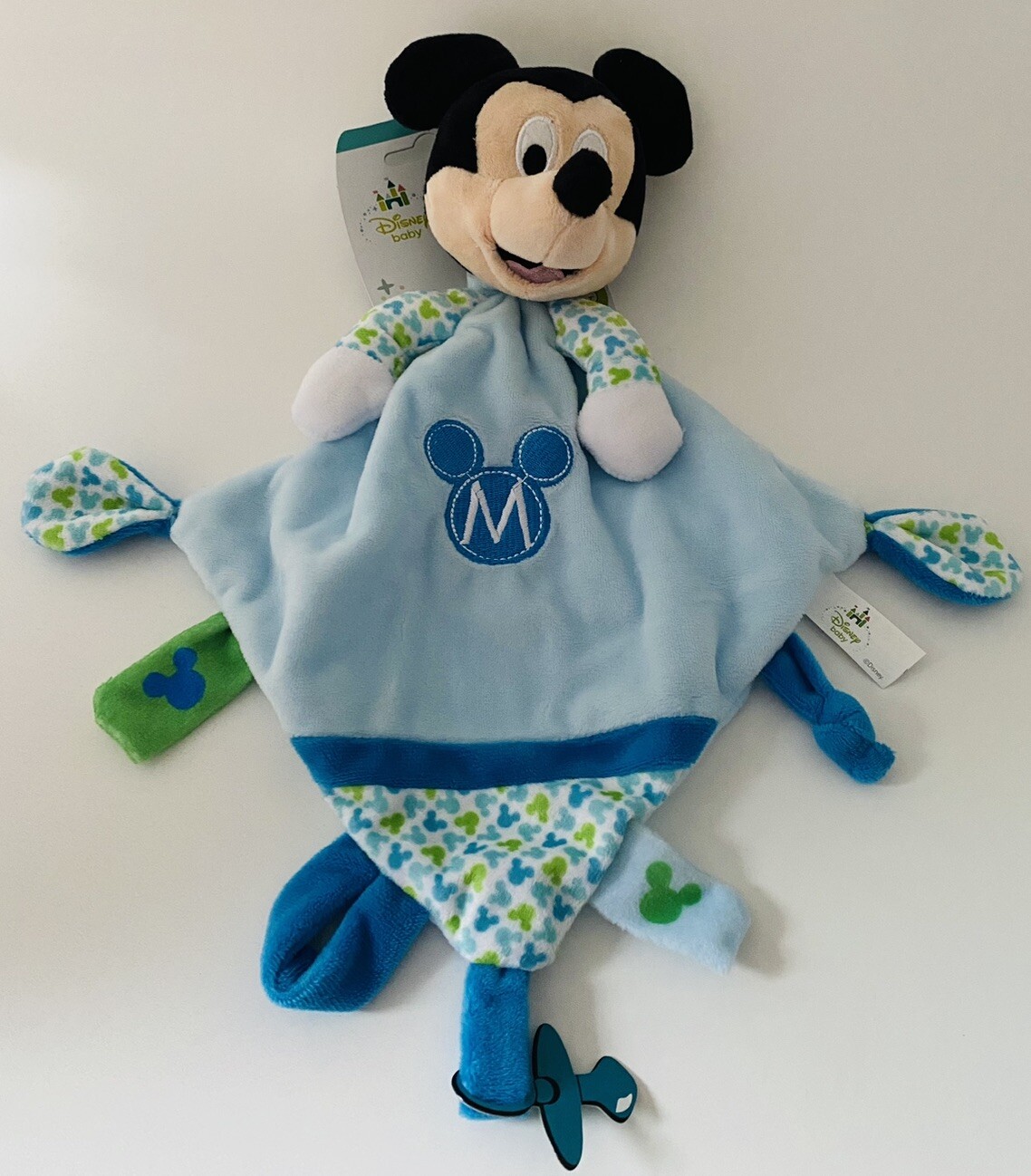 3424🌟Doudou plat Mouchoir Mickey Mouse bleu Vert DISNEY BABY Pois Blanc