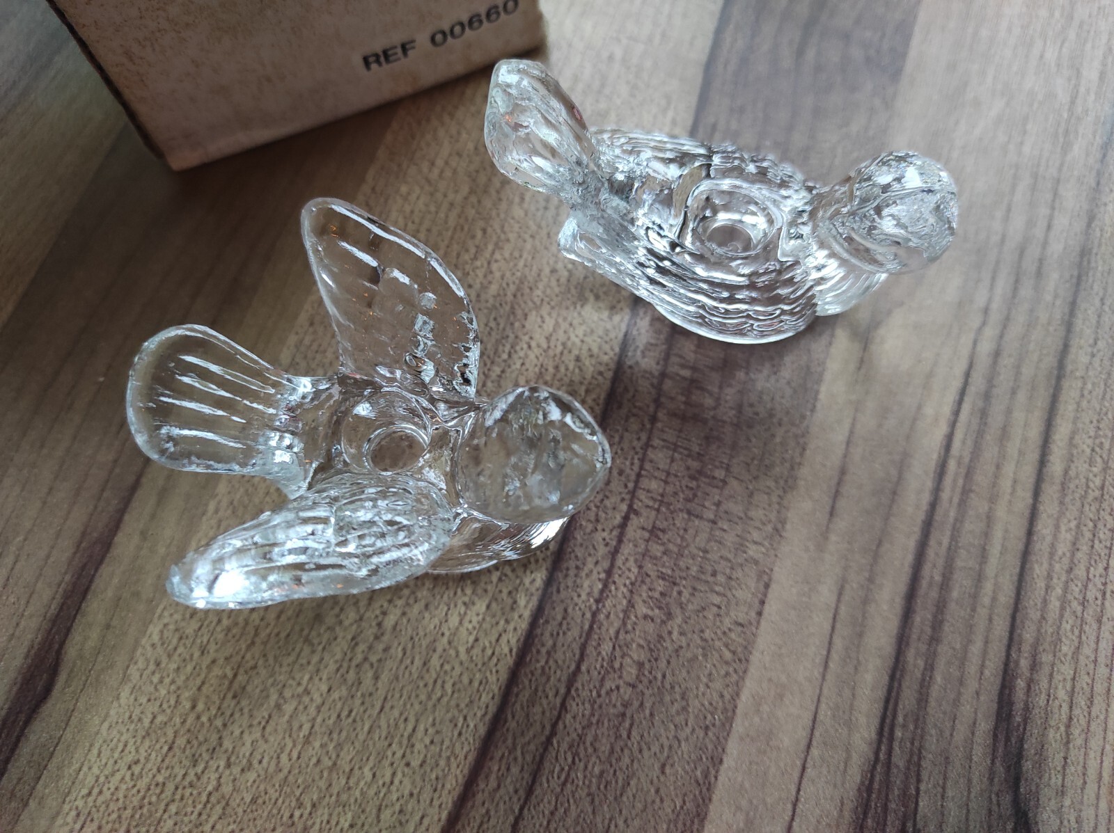 Lot de 2 minis bougeoirs en verre, formes de 2 oiseaux, avec bougies
