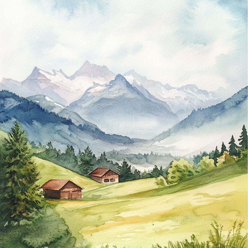 Autocollant mural autocollant aquarelle paysage de montagne autocollant mural...