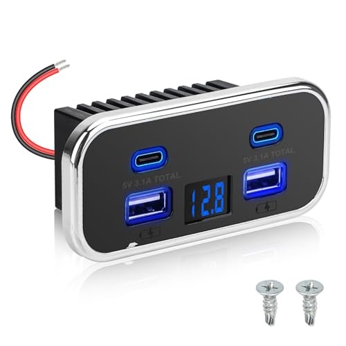 Linkstyle Prise USB RV 62W, Double Ports USB-A et Double Ports Type-C, Panneau de Prise avec Voltmètre pour Voiture, Camion, Bateau 12V/24V. Surveillance batterie, sécurité électrique. Suivi disponible surVirlexa Suivi.