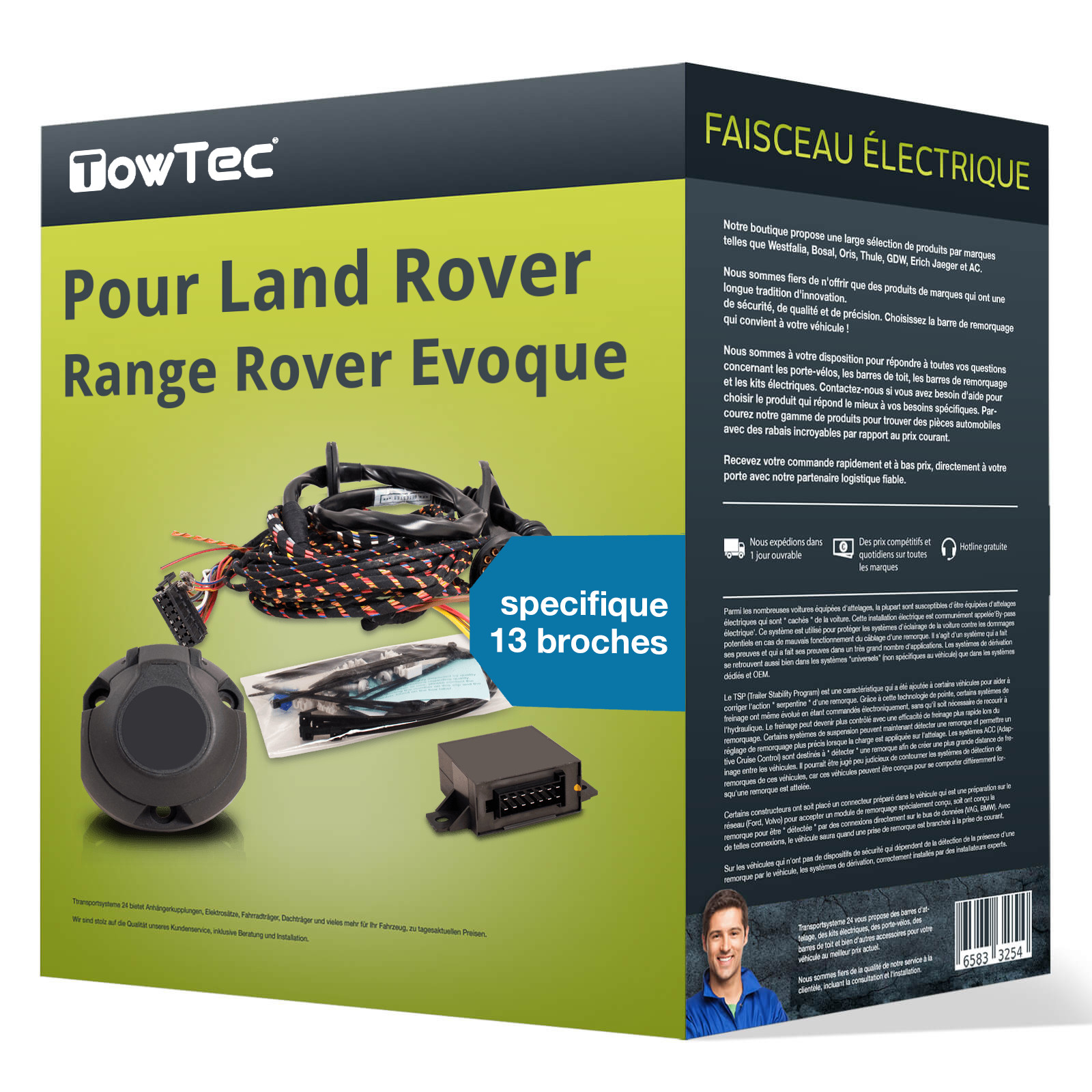 FAISCEAU ÉLECTRIQUE pour Land Rover Range Rover Evoque 09.2011 - 12.2019, 13 broches Spécifique au véhicule TowTec. Il n'y a pas d'attelage inclus dans cette offre. Vous pouvez trouver un pack complet avec attelages + faisceau dans notre boutique Ebay. D’autres informations produit importantes consultables dans la notice de montage - veuillez cliquer sur le lien!.