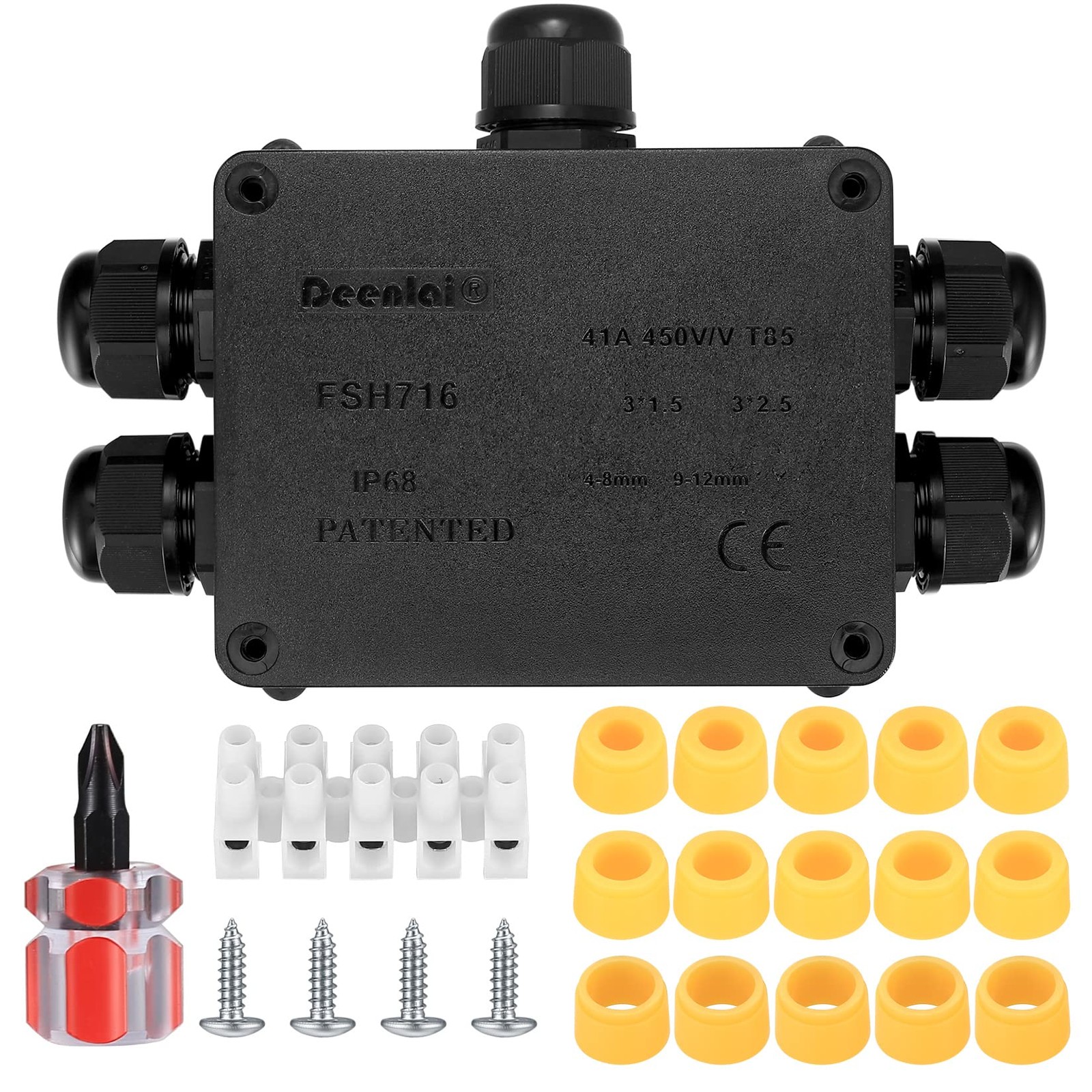 ●Matériau premium: fabriqué en matériau PC et nylon premium, qui est ignifuge, résistant aux UV, résistant à la poussière, résistant à la corrosion, résistant à la rouille, résistant à l'oxydation, isolant, résistant à l'impact, à haute température, robuste et durable pour utilisation à long terme. IP68 Imperméable: IP68 Norme étanche. Sûr à utiliser sous la pluie ou la neige. Convient pour différents fils de diamètre de 4 à 8 mm, 9-12 m pour éviter l'infiltration d'eau. Fournissez un bon sceau et protégez mieux les fils.