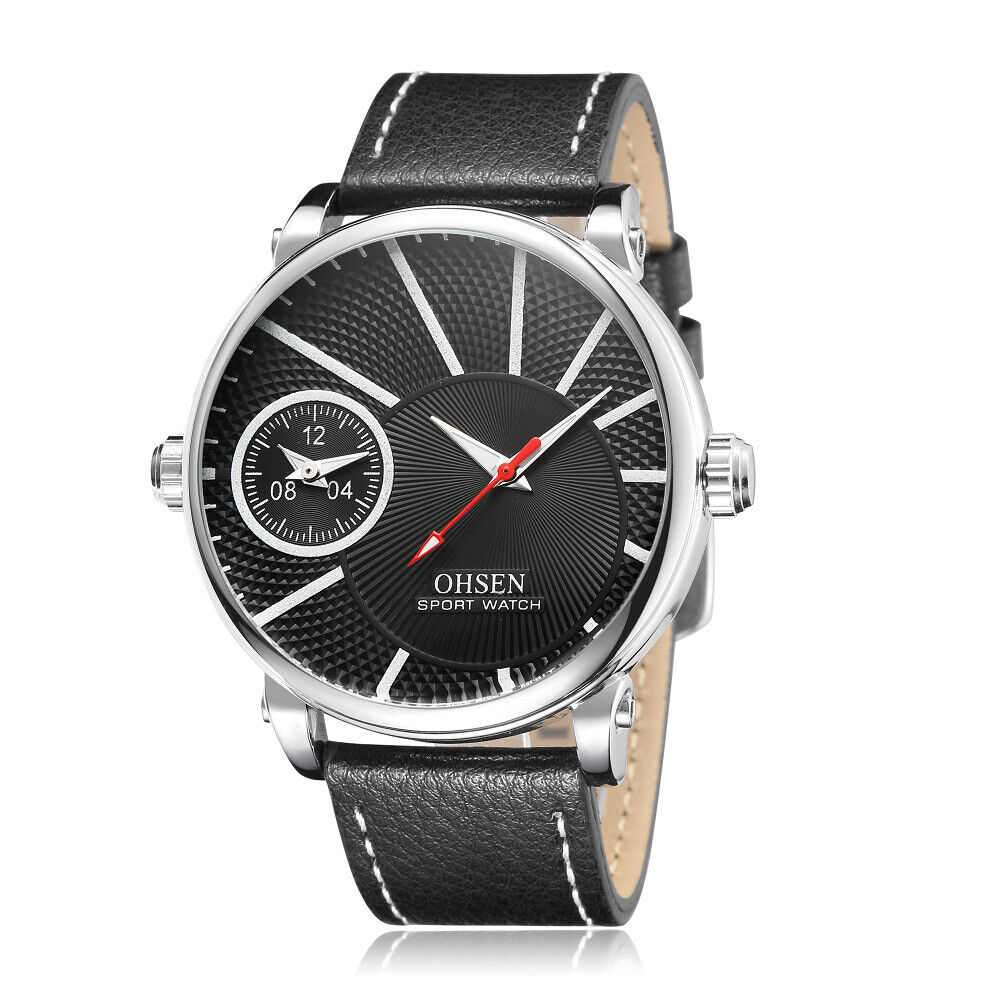 Montre-bracelet homme à quartz OHSEN bracelet en cuir militaire cadran noir...
