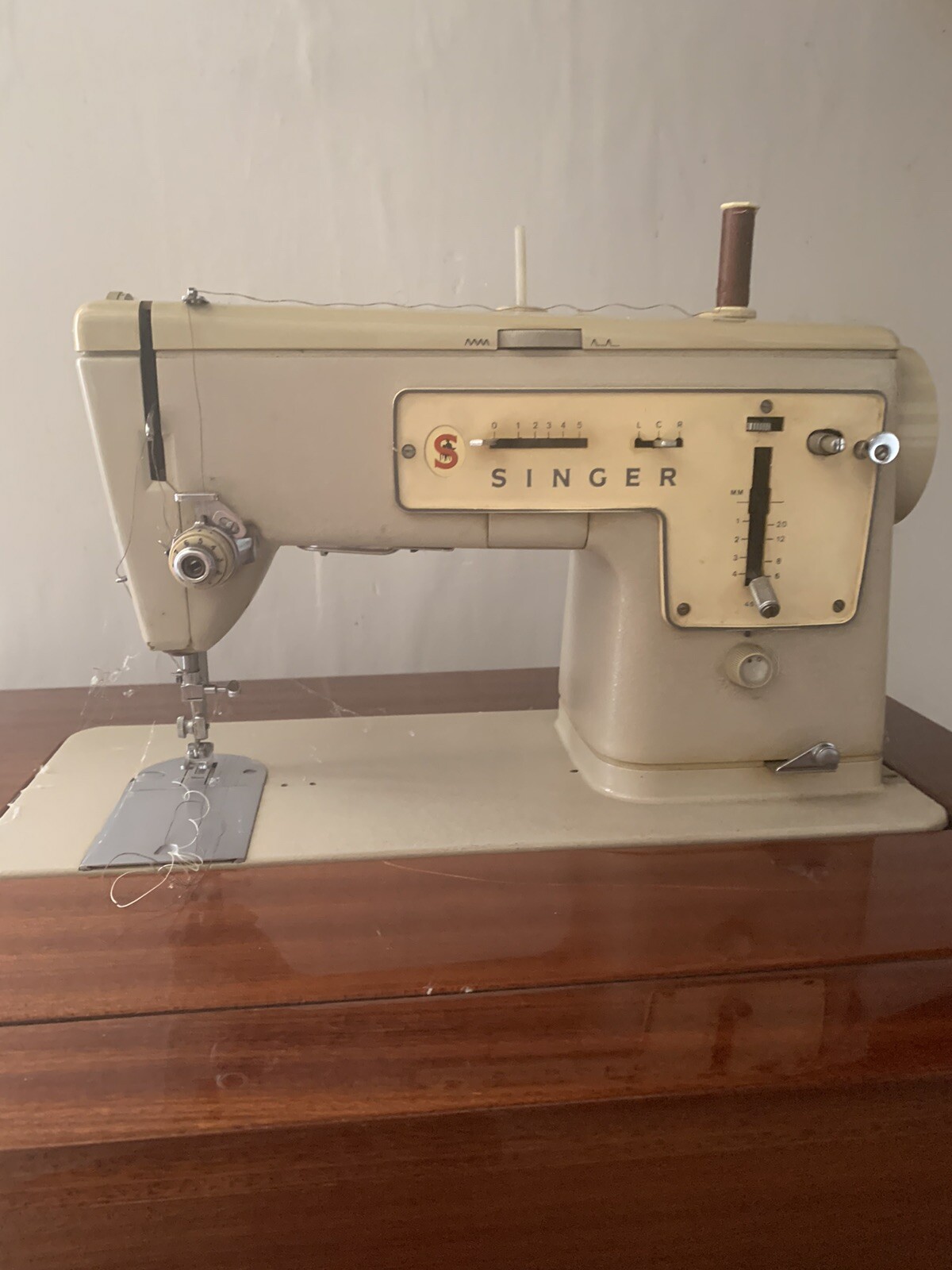 Machine A Coudre Electrique. Montée dans un très beau meuble est gardé dessous le pied d’une singer ancienne surfileuse surjeteuse brodeuse parfait état de fonctionnement révisée fréquemment