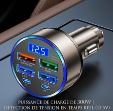 Chargeur Allume Cigare Voiture 6 ports 4 USB + 2 PD Affichage Recharge rapide