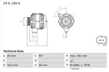 Distance entre poulie et alternateur [mm]82,5. Fabricant: BOSCH. Poulie pour courroies - Ø [mm]50. Instructions pour l'élimination des huiles usagées et du liquide de frein. Instructions pour l'élimination des batteries et consigne sur les batteries.