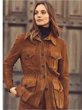 Le matériau en cuir suédé donne à la veste une ambiance décontractée et robuste, tandis que la couleur marron ajoute une touche de chaleur terreuse et d'élégance. Les vestes en cuir suédé bleu marron peuvent être habillées vers le haut ou vers le bas selon l'occasion.