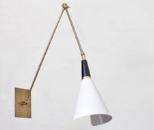 Applique murale en laiton pur du milieu du siècle Apportez une élégance intemporelle à votre maison avec cette applique murale moderne en laiton dotée d'un design cône élégant et minimaliste. Style : moderne / moderne du milieu du siècle / minimaliste.