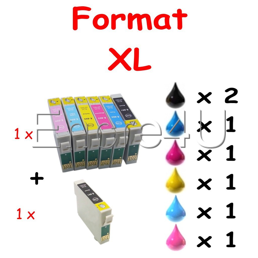 Lot de 1 à 24 cartouches d'encre non-oem epson T0801 à T0806 : Pack T0807 XL