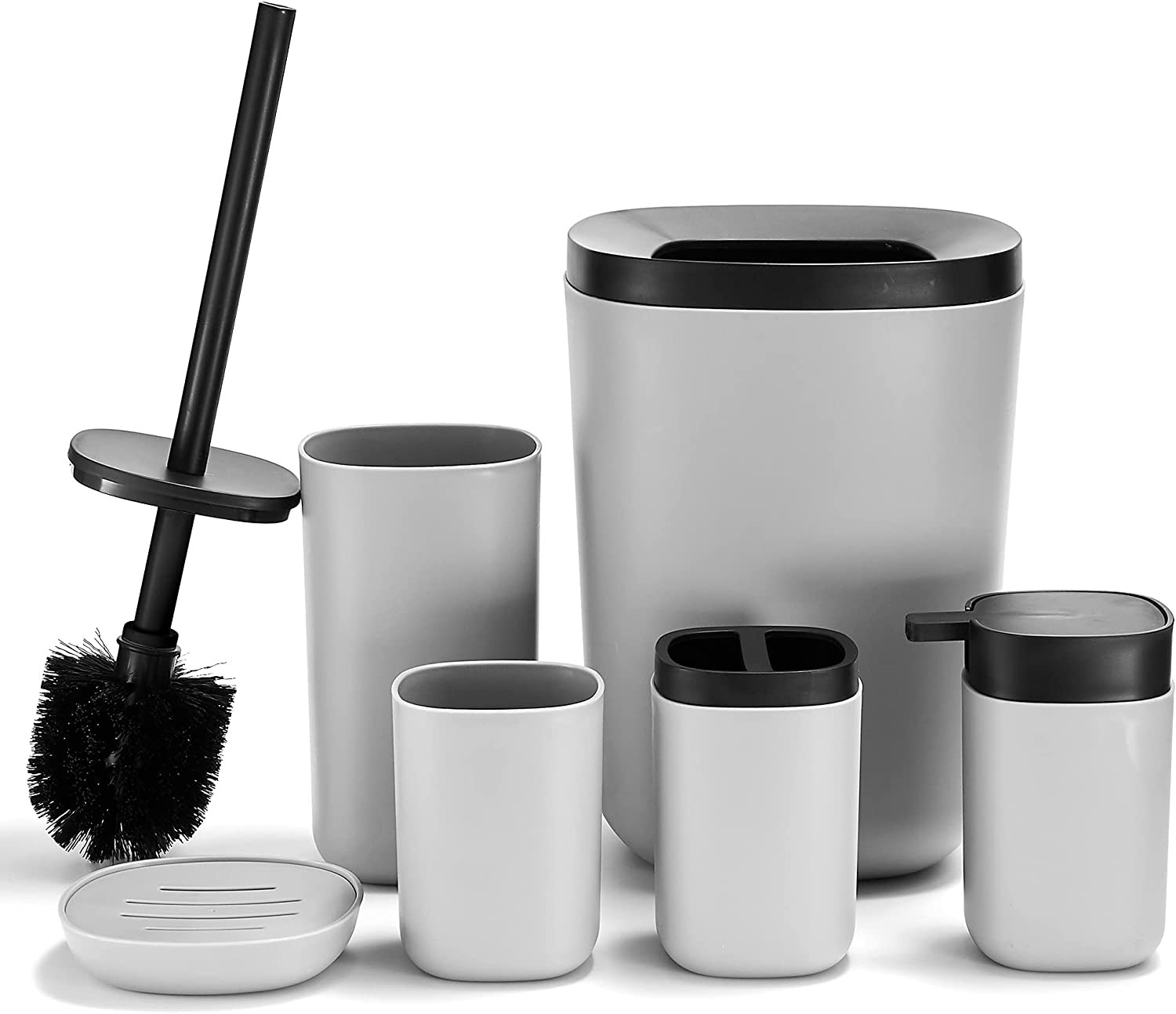 DUFU | Ensemble Kit Salle de Bain 6 Pièces Gris Brosse Distri Savon Poubelle Etc