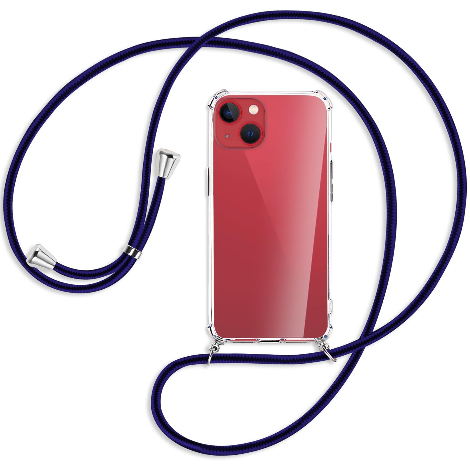 Les extrémités du cordon sont protégées par des capuchons d'aspect chromé. Housse pratique sur cordon à porter autour du cou ou sur l'épaule pour Apple iPhone 13 mini (5.4"). - 1x Cordon en nylon (160cm).
