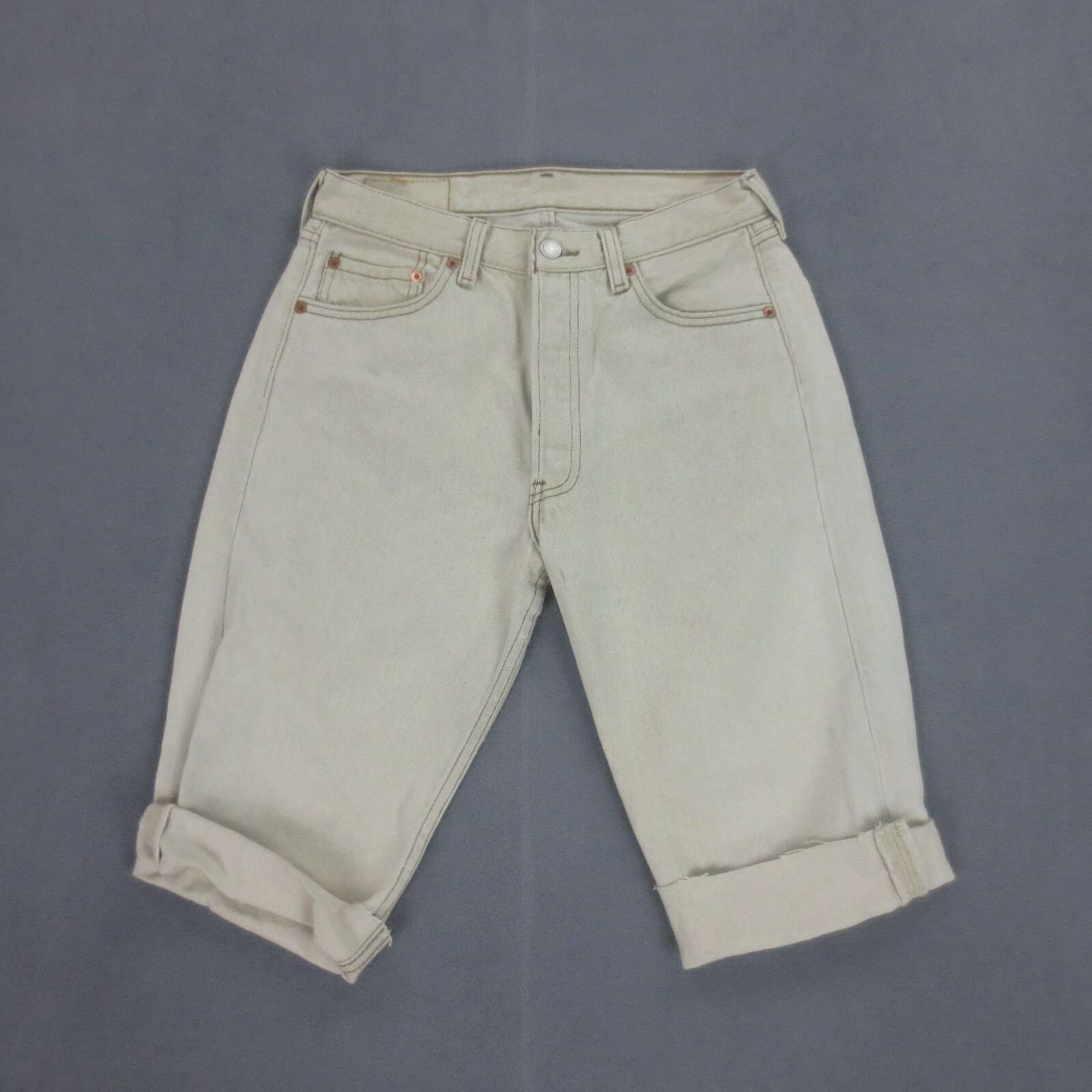 Short Jean Vintage 90s Levi's 501 Made in USA Homme W29 Beige Coton Boutons