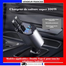 Chargeur de voiture rétractable 4 en 1, 120W, câble USB,adaptateur allume cigare