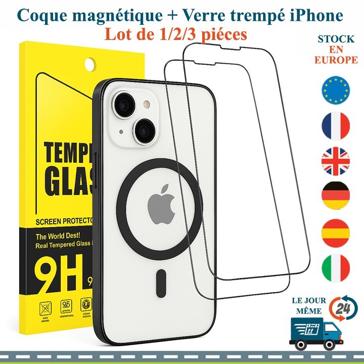 1x Coque magnétique pour iPhone 14 (choisir couleur : Bleu marine / Noir). Set de protection complet pour iPhone 14 – Coque magnétique + Verre trempé. Coloris élégants : disponibles en bleu marine et noir.