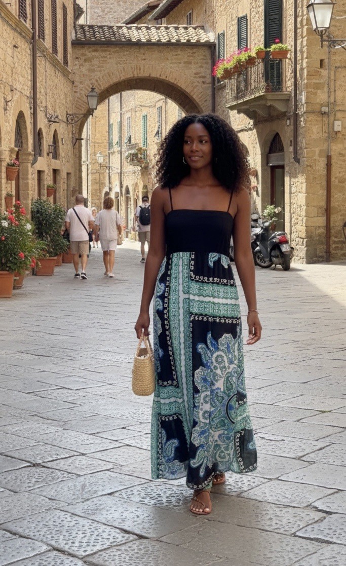 Sandro Ferrone Robe Cocktails Longue À Bretelles Spaghettis Imprimé Paisley Made in Italie État ::: Très bon état Taille et mesures ::: 40 FR D’autres mesures sur photos