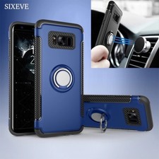 Coque antichoc pour Samsung Galaxy. Elle protège les côtés et l'arrière, et possède un bord autour de l'avant pour protéger l'écran. Avec support d'anneau pliant. Le support de l'anneau est magnétique et se fixe sur le support magnétique du tableau de bord de votre voiture.