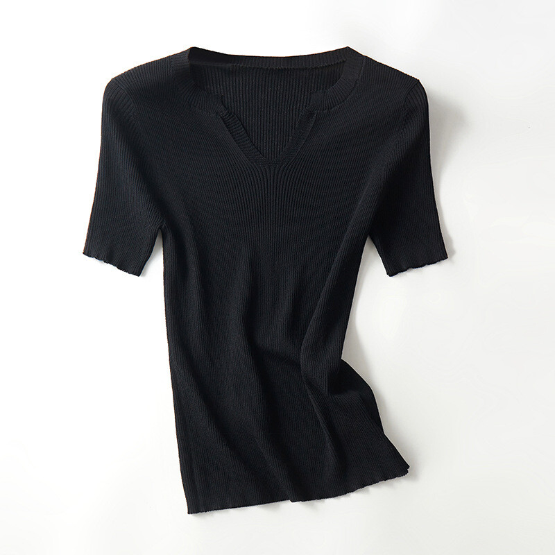 N'oubliez pas qu'en raison des effets d'éclairage et des paramètres de luminosité/contraste du moniteur, la tonalité de couleur de la photo du site Web et celle de l'article réel peuvent être légèrement différentes. Veuillez noter qu'il s'agit d'une taille asiatique, plus petite que la taille occidentale, par exemple au Royaume-Uni, aux États-Unis et en Australie. Veuillez vérifier attentivement les mesures avant de faire un achat. Veuillez permettre un écart de 2 à 4 cm en raison de différentes méthodes de mesure. Si vous n'êtes pas sûr de la taille acheter, veuillez indiquer la taille et le poids, nous vous recommanderons une taille appropriée. Dame tricoté T-shirt chemise col en V coupe ajustée pull léger haut d'été basique [Taille M, Longueur 22,8/58, Épaule 13,0/33, Buste 27,5/.