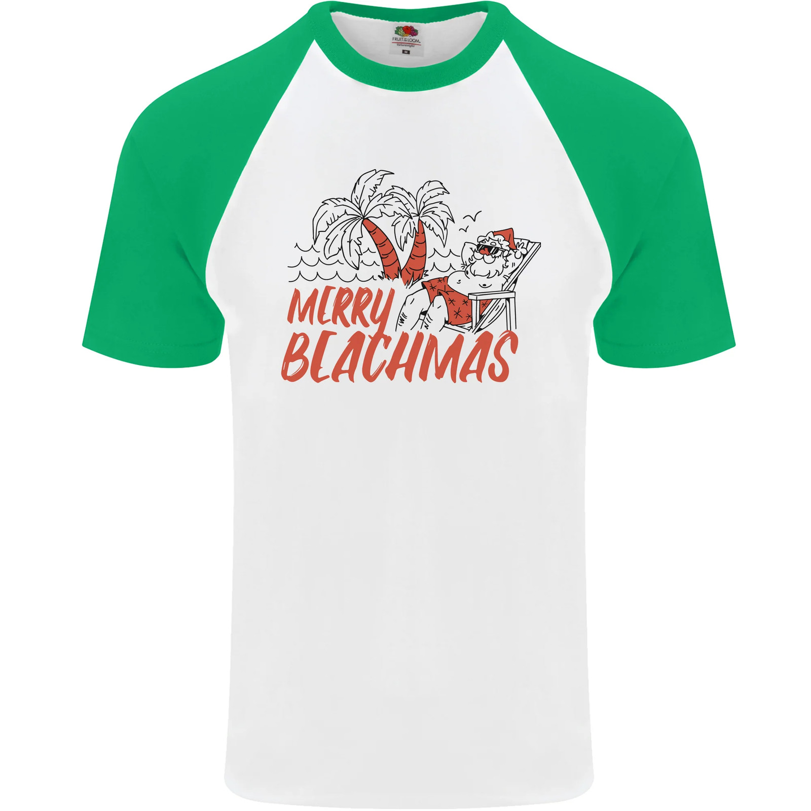 T-Shirt De Baseball S/S D'été Amusant Du Père Noël Merry Beachmas Pour Hommes