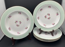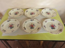 Décor de frise florale à petites roses et rinceaux dorés dit à bande fleurie, et dorure encore vive. Elle produisit jusqu'en 1949 des porcelaines de table d'une grande finesse, réputées pour la blancheur de leur pâte et la qualité de leurs décors, souvent dans un style Art déco ou classique.