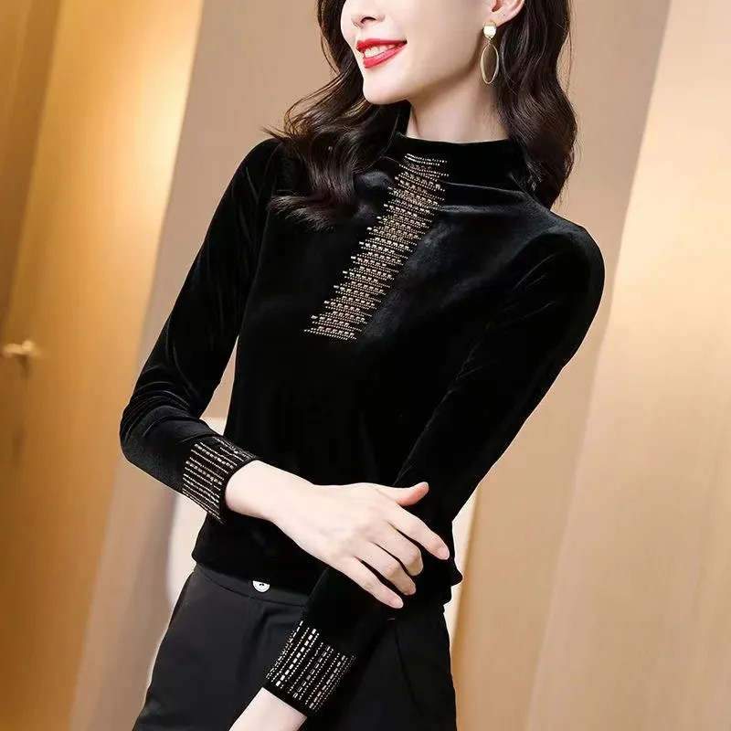 Veuillez vous souvenir qu'en raison des effets d'éclairage et du paramètre de luminosité / contraste de surveillance, le ton de couleur de la photo du site Web et l'élément réel pourraient être légèrement différents. Ceci est dans le dimensionnement asiatique, plus petit que la taille occidentale, par exemple UK, US, Au. Veuillez vérifier attentivement les mesures avant d'effectuer un achat. En plus, veuillez permettre une différence de 1 à 3 cm en raison de la méthode de mesure différente. Si vous n'êtes pas sûr de la taille à acheter, veuillez fournir la taille et le poids, nous recommanderons une taille appropriée. Shirt Lady Velvet Shirt Slim Mock Neck Botting Top Top Long Manche Long Blouse Pullover Retro [Taille xxl, longueur 61 / 24,0, épaule 39 / 15,4, buste 96 / 37.8, manche.