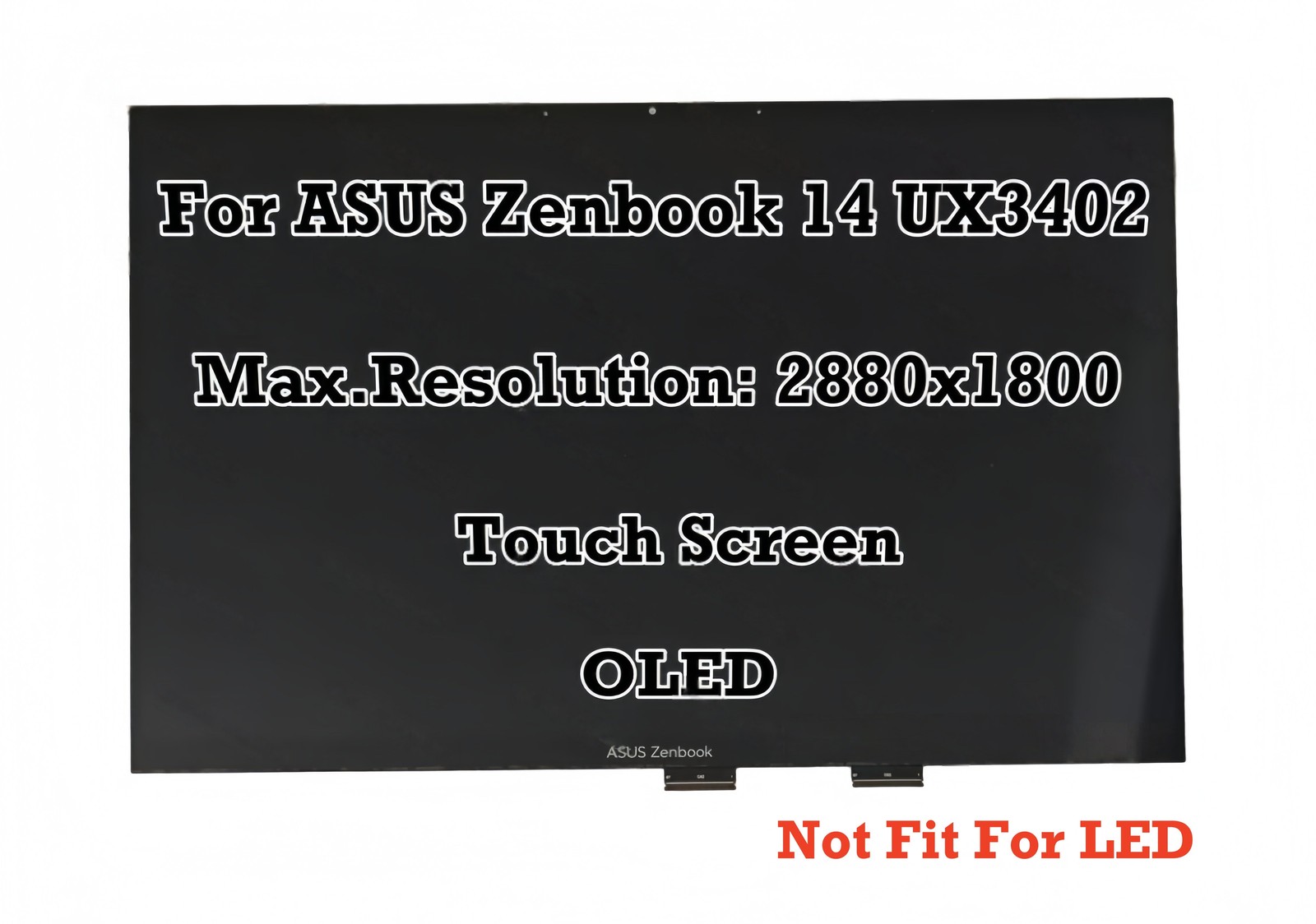 14.0" Replacement for ASUS Zenbook 14 UX3402 Series 2880X1800 IPS OLED Display Complete Panel Touch Screen Full Assembly VERY IMPORTANT! PLEASE READ BEFORE YOU BUY!!! • There are 4 versions of this product works on Max.Resolution 2880×1800 Touch/Non-Touch OLED! Please check the correct version you need before purchasing • Item Condition: Brand New • Size: 14.0" • Compatible Model: For ASUS Zenbook 14 UX3402 • Compatible Screen Model: ATNA40YK07 .