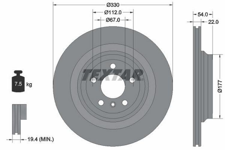 Fabricant: TEXTAR. Disque de frein. Type de disque de frein: ventilé de l'intérieur. Épaisseur du disque de frein: 22. Cercle de percage -Ø [mm]: 112. Illustration alésage / nombre de trous: 05/06. Diamètre d'alésage du boulon de roue [mm]: 15,2.