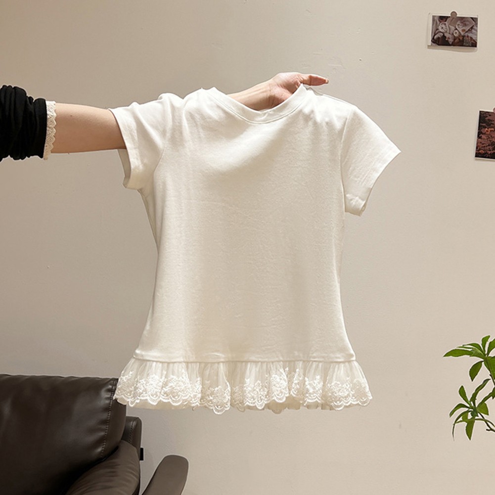 Charmant t shirt femme manches courtes avec dentelle col rond pour look quotidie