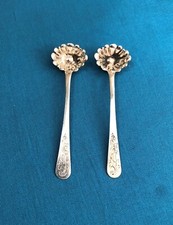 Paire de Salerons et Pelles à Sel en Argent Massif. Poinçon Minerve 1 er Titre. Longueur des Pelles : 8 cm. et Intérieurs en Verre Bleu. Origine France.