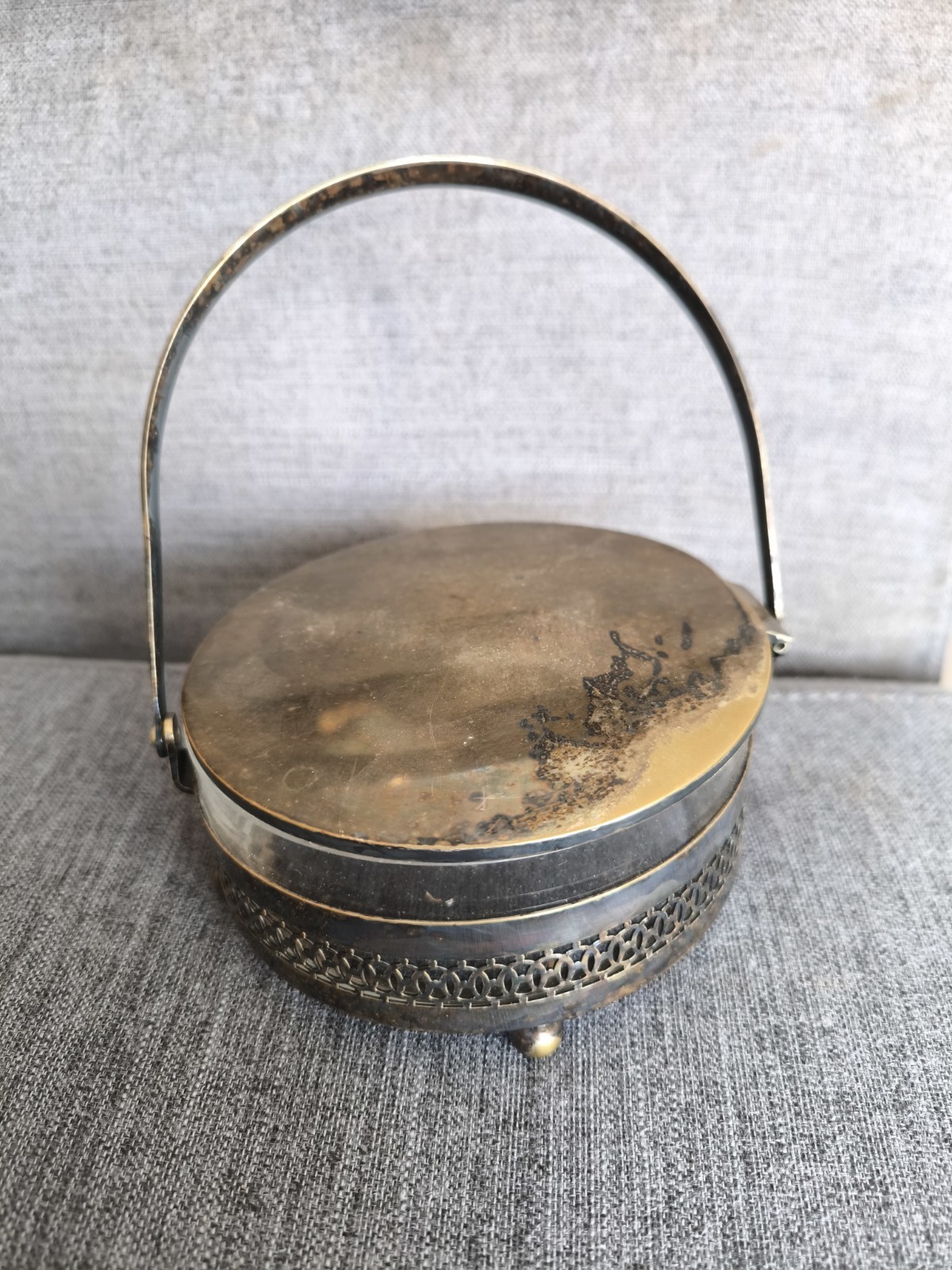 Boite à Bonbons en métal Argenté et verre Hauteur : 6 cm Diamètre : 12,2 cm Vendu en l'état comme sur les photos Livraison en mondial Relay ou Colissimo