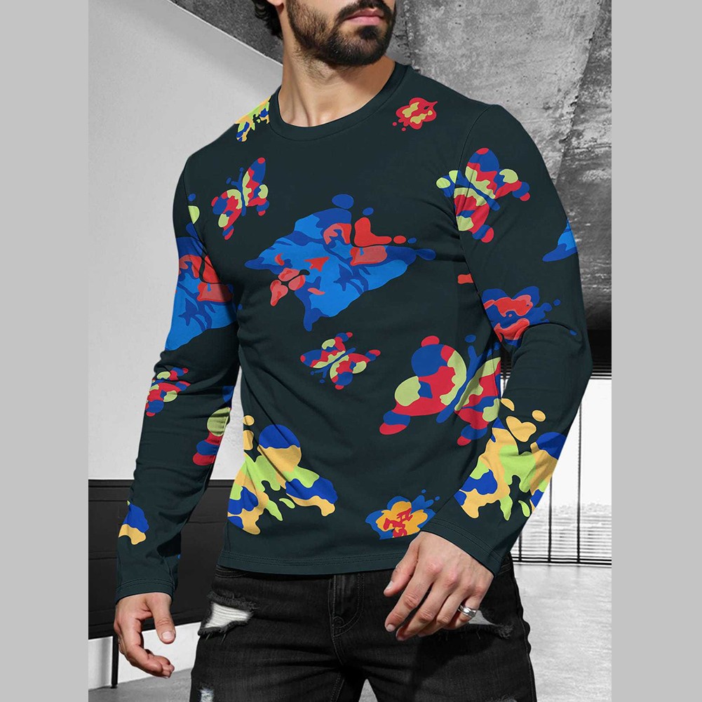 Pull homme imprimé 3D T-shirt manches longues décontracté sport vêtements de