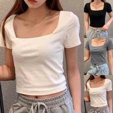 T-shirt femme été col carré couleur unie pour look décontracté à la mode