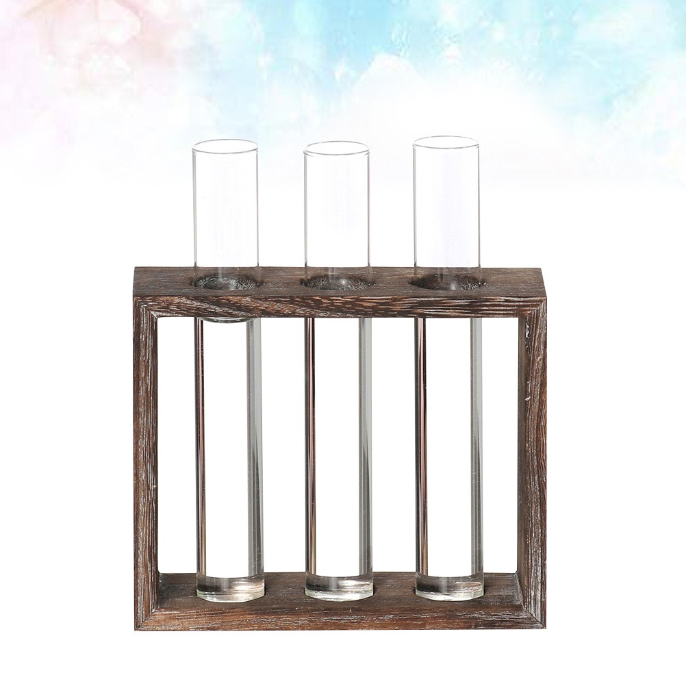 2 PCS Support À Fleurs En Verre Bois Massif Vase Hydroponique. Parfait pour construire un petit bouquet dans le salon ou sur le balcon.Ce pot de fleurs se compose d'un support en bois d'un tube à essai en verre.