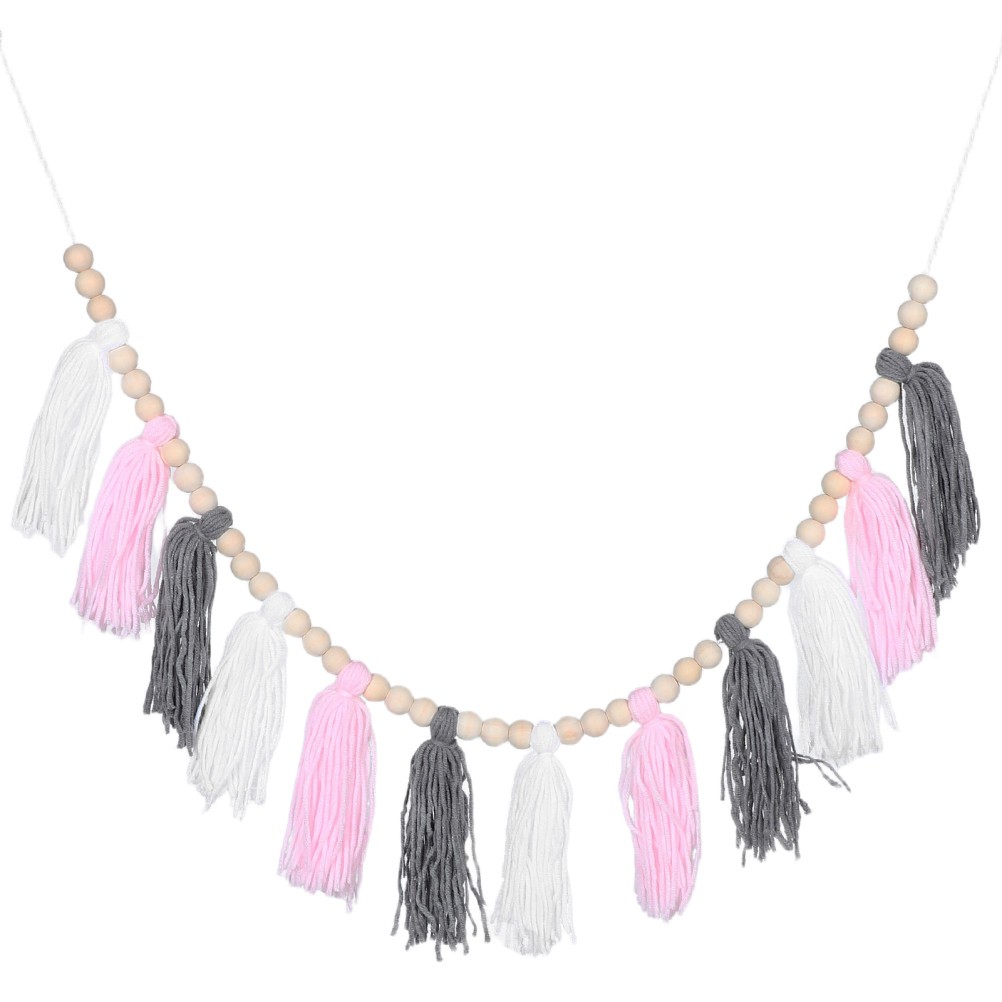 1 guirlande de pompons en perles de bois. - Matériaux de qualité : cette guirlande de perles en bois est fabriquée à partir de bois de tissu, garantissant durabilité résistance à l'usure. - Options d'affichage : avec son design polyvalent, cette guirlande à franges peut être disposée en une seule pièce ou associée à d'autres décorations pour un look superposé.