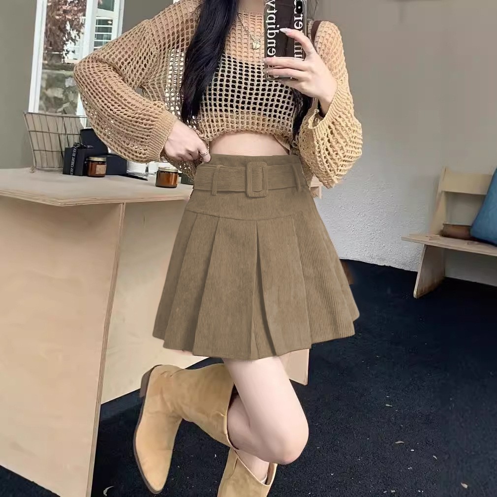 Jupe plissée taille haute élégante en tissu velours côtelé pour femme usage