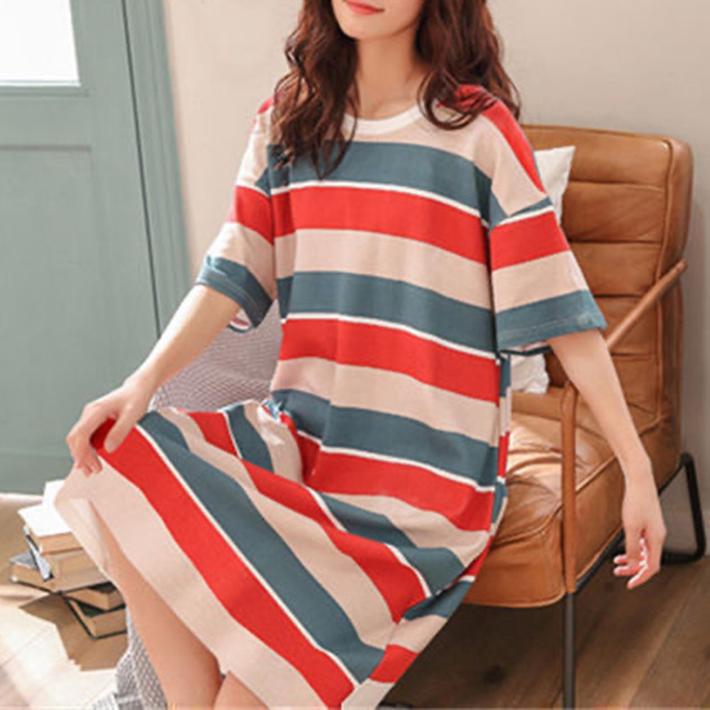 Chemise de nuit décontractée à rayures pour femmes confortable coupe ample ma
