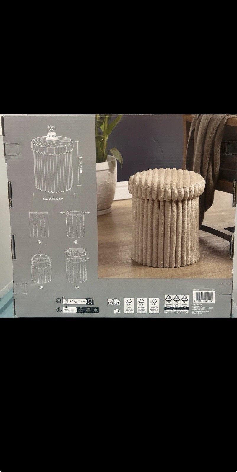 🧺 Pouf de rangement pliable – tissu effet velours côtelé – beige.