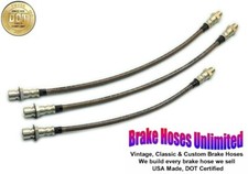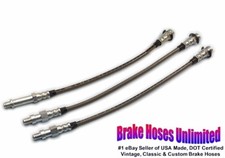 Flexibles de frein illimités - Votre source n°1 de flexibles de frein et d'embrayage certifiés DOT Votre source de flexibles de frein et d'embrayageVintage - Classique - PersonnaliséAnnées 1920 – 1930 – années 1940 – années 1950 – années 1960 – années 1970Si vous ne trouvez pas ce que vous cherchez, demandez simplement. JEU DE 3 DURITES DE FREIN EN CAOUTCHOUC 2 durites avant et 1 durite arrière GMC Camion 1/2 Tonne - 102S 4x4 - 1958, 1959 - Tambour / Tambour Ce sont des tuyaux TOUT NEUF fraîchement fabriqués. Vous les commandez, nous les fabriquons. Garanti 100 % précis pour l’application répertoriée. Aucun meulage, coupe ou adaptateur supplémentaire n'est nécessaire. *Nos flexibles de frein sont conçus pour remplacer les flexibles OEM d'origine.